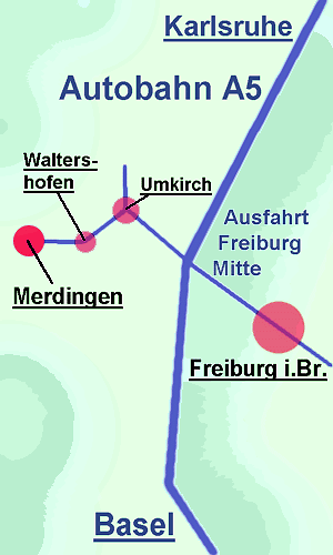 "Karlsruhe- Basel" an der Ausfahrt "Freiburg Mitte" auf der